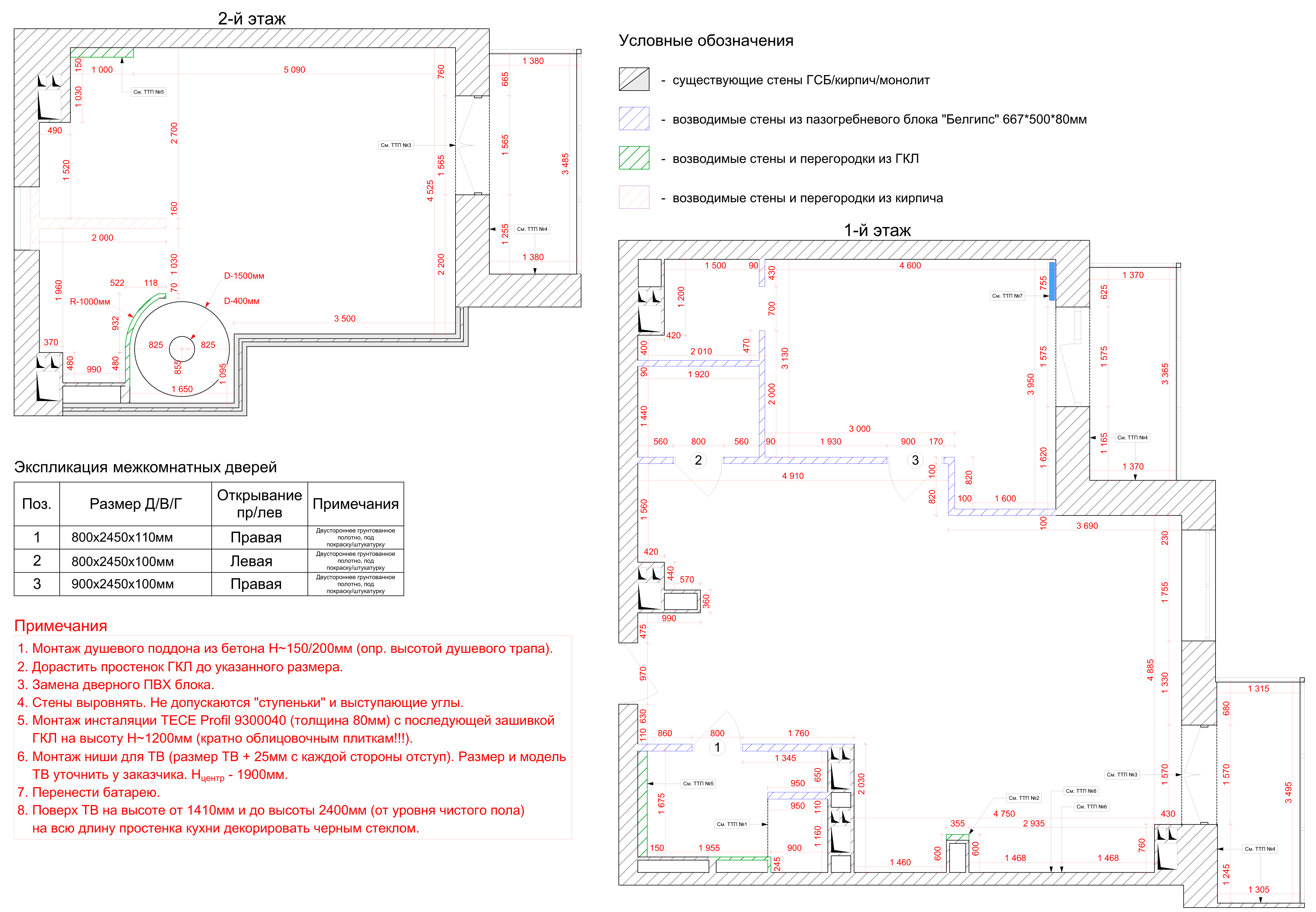 На этом плане отображаются возводимые стенки, перегородки, конструктивные узлы и пр. Делается с соблюдением строительных норм и правил для согласования в госорганах. (смотреть).