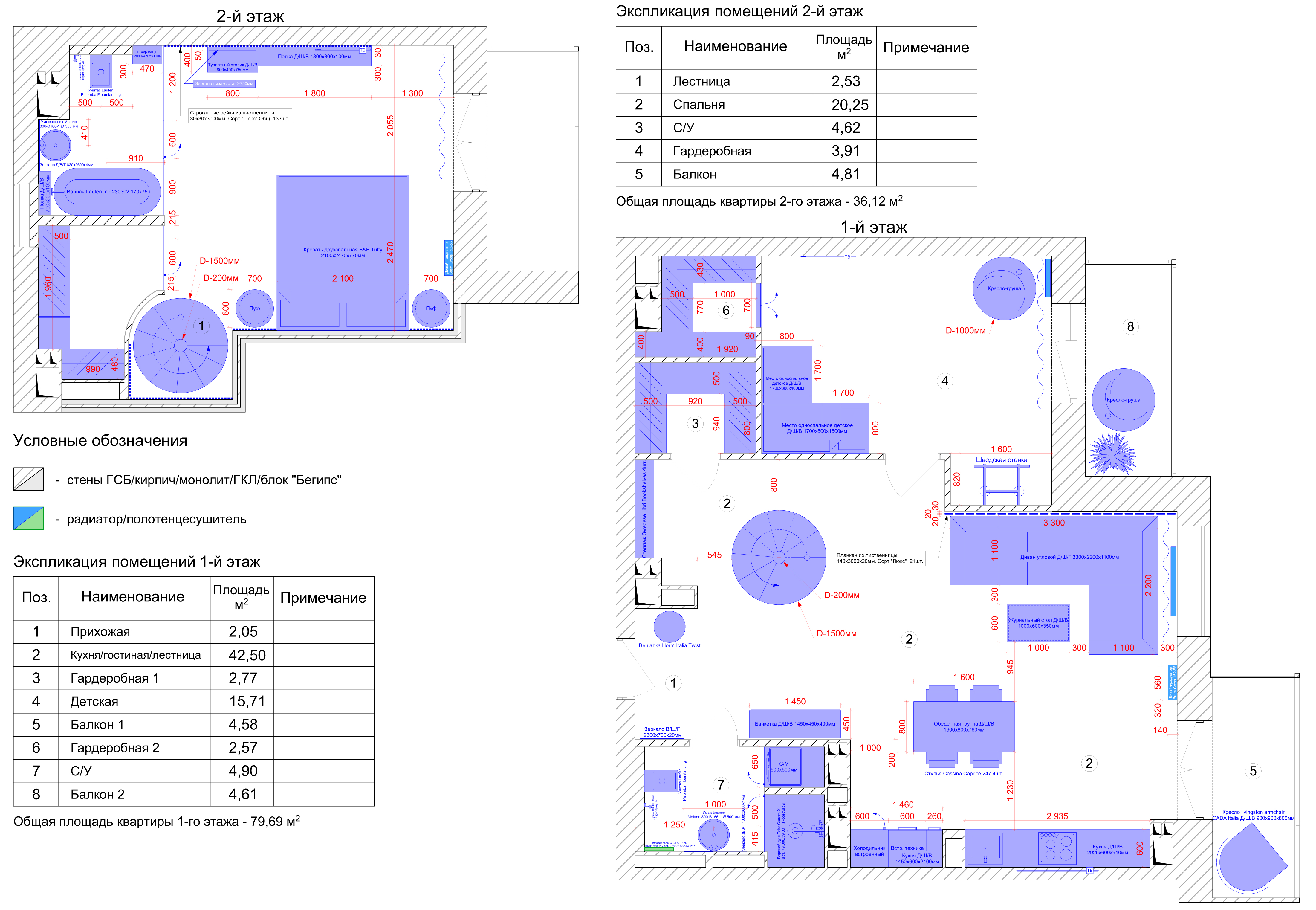 Планировочные решения с указанием габаритных размеров и точного расположения мебели/декора (смотреть).