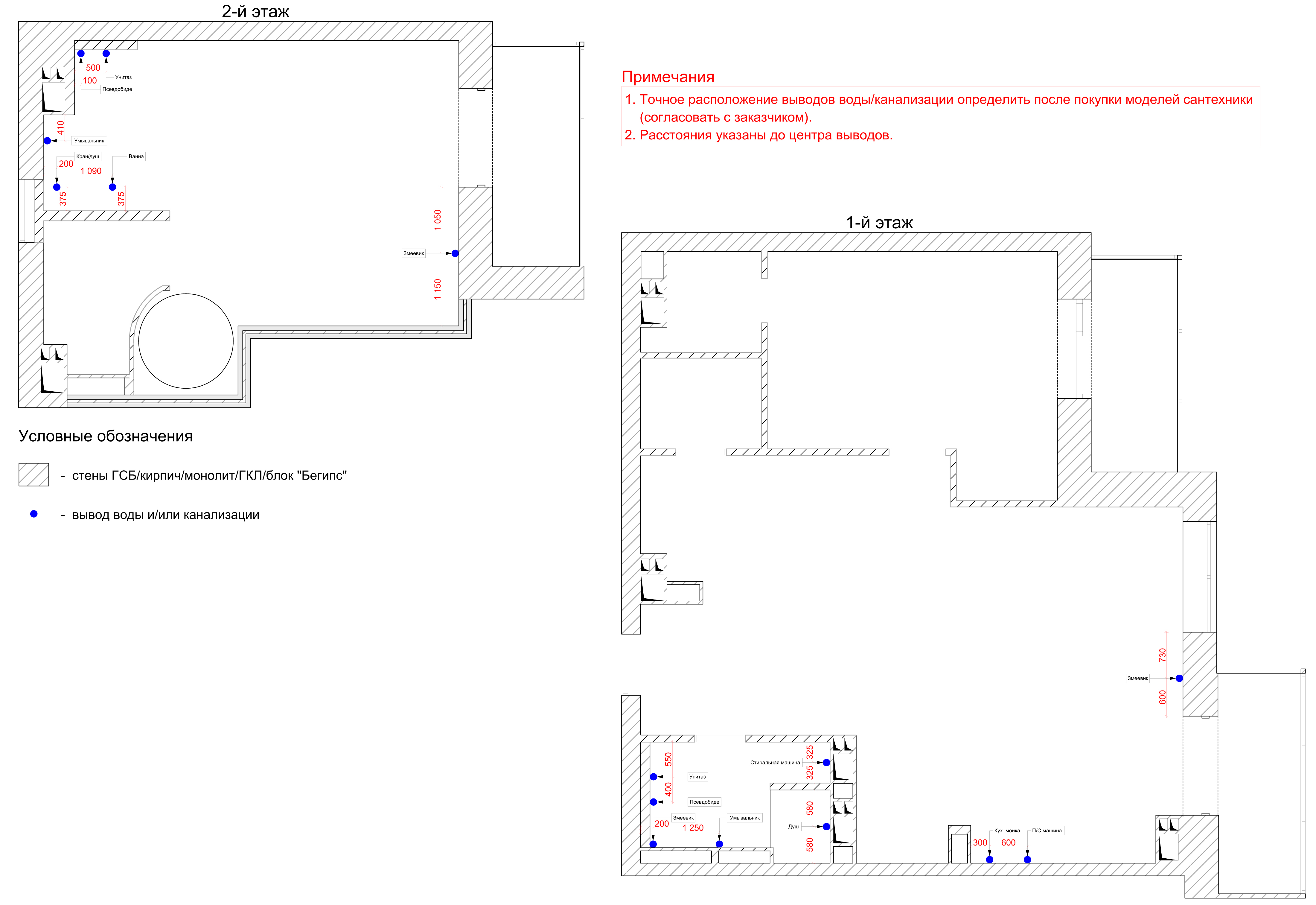 План привязок сантехнических выводов