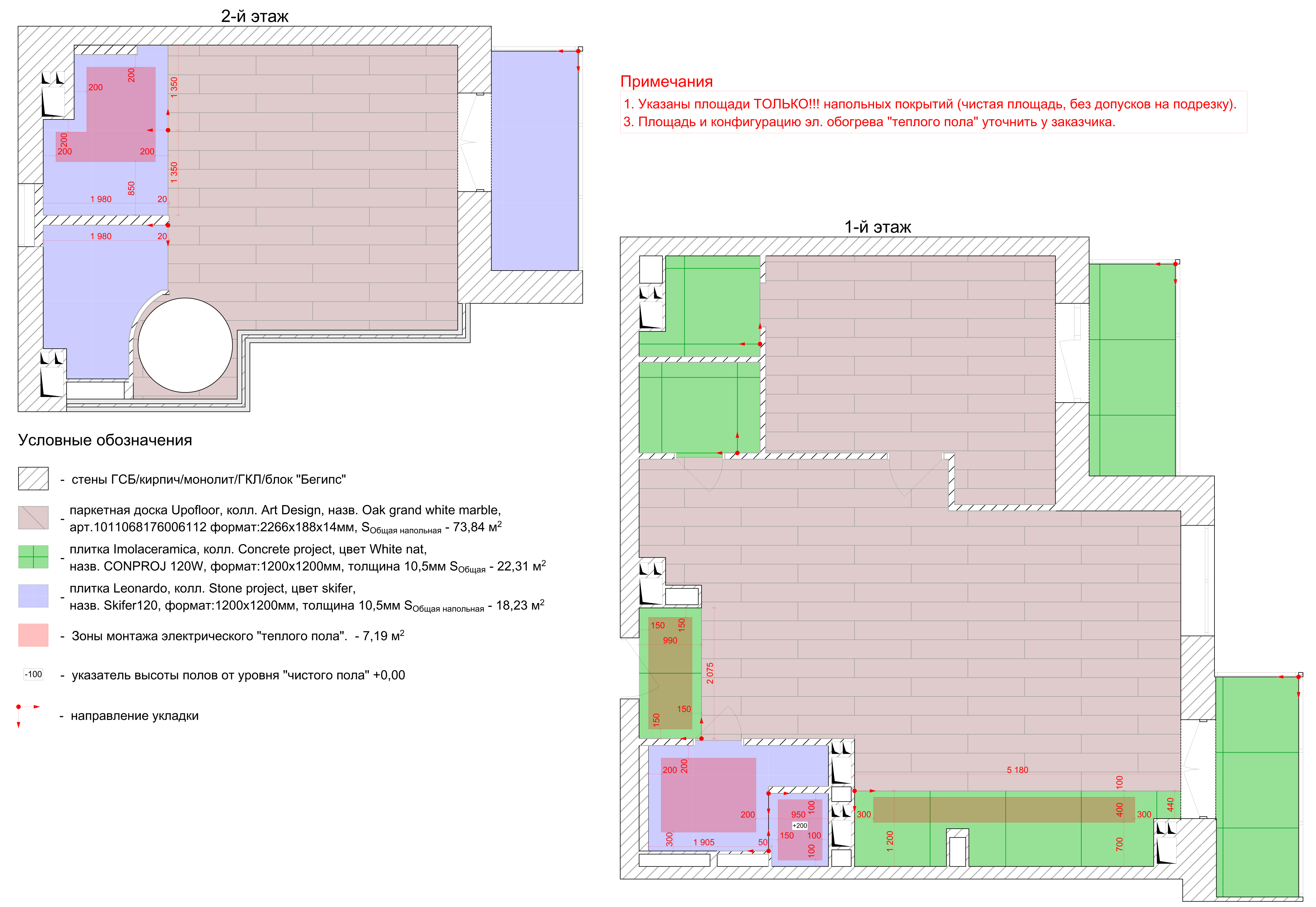 В этом чертеже фиксируются все согласованные напольные покрытия (уровни, материал, направление укладки, площадь покрытий) (смотреть).
