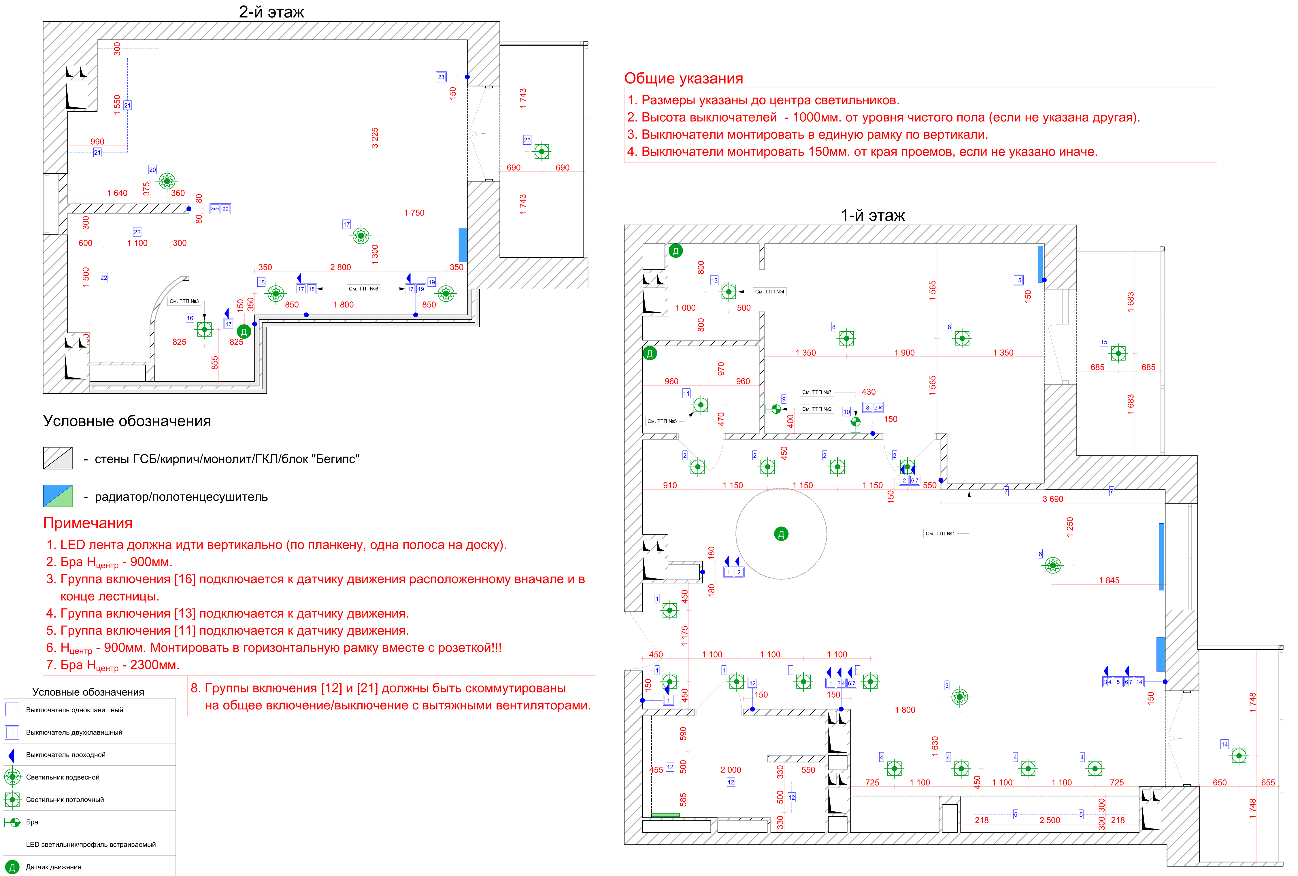 План размещения светильников и групп включения